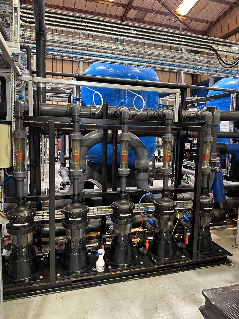 Providing 1000 m³/day, the system utilises less than 3 kw/hr per m³ of permeate water produced. With a system recovery of 40%.