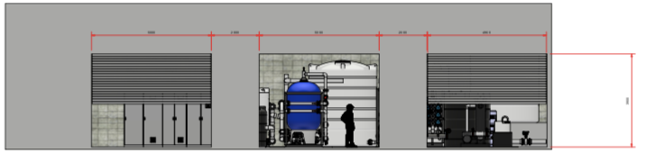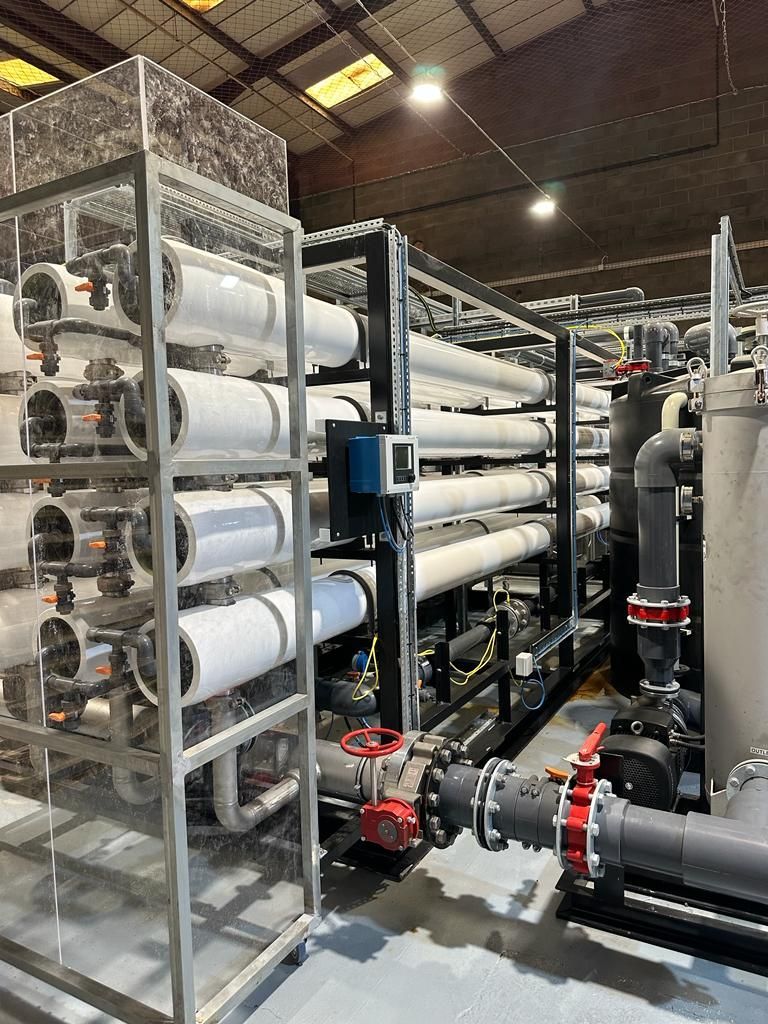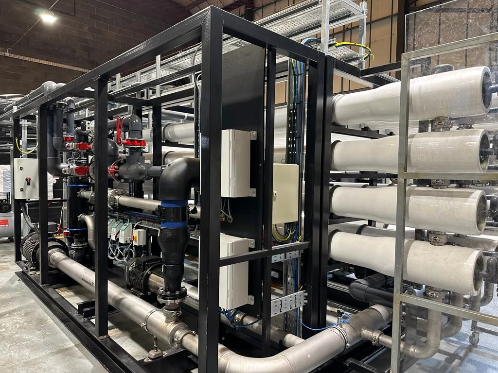 Providing 1000 m³/day, the system utilises less than 3 kw/hr per m³ of permeate water produced. With a system recovery of 40%.