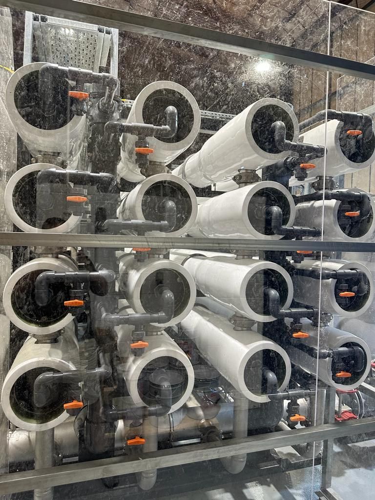 - RO membrane array consisting of 16 RO pressure vessels and 96 RO Membranes