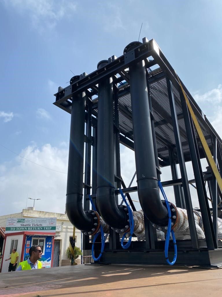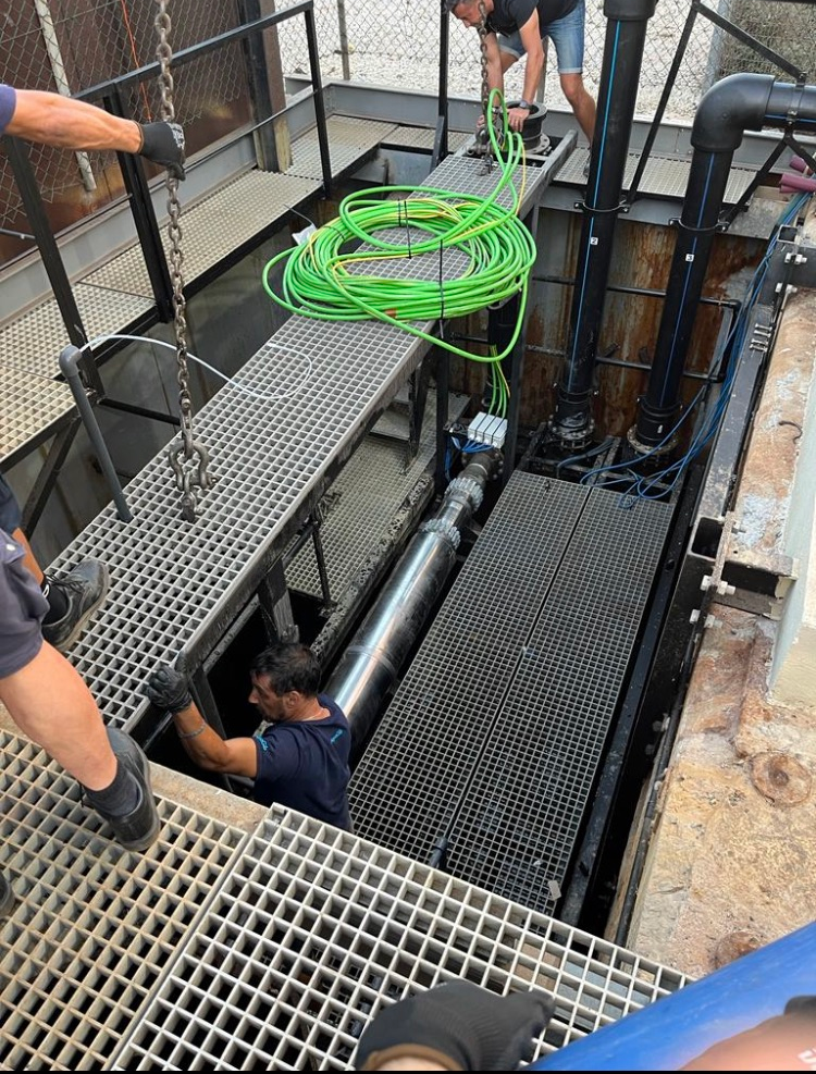 The new pumping station will supply two intermediate tanks on the rock, using the latest Grundfos energy efficient IE5, inverter driven submersible pumps at flow rates of 440m3/hr at pressures between 11 & 14 Bar